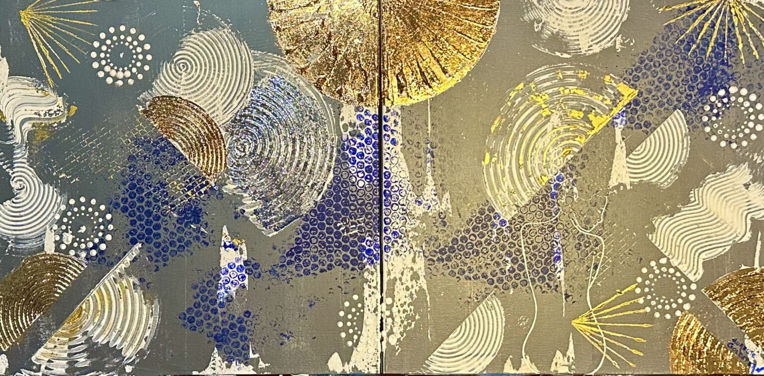 2 Leinwände mit 50 x 50 cm I Acryl, Blattgold und Struktur auf Leinwand I Darstellung im Querformat 09/2024